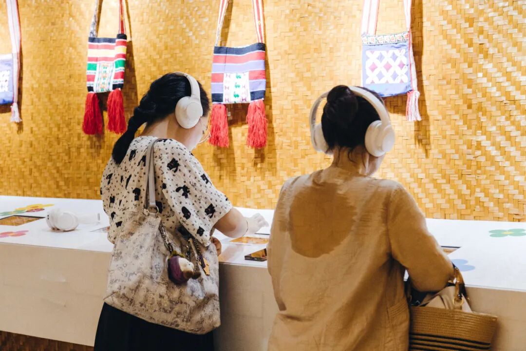 展区里的视频里循环播放着怒江的风景大片、策展人多年来采访多位非遗传人的纪录片,更有每年春节和家乡傈僳族亲朋好友过年的热闹场景,让每位游客都能沉浸式体验怒江傈僳人民的真实生活。