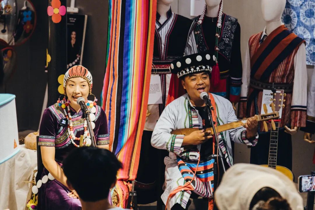 7月22和23日两天,来自怒江福贡县老姆登的江晓春和春丽晓慧夫妇的现场演出,直接把展览变成「livehouse现场」。江晓春抱着达比亚琴一弹,整个南头古城仿佛都飘起了怒江的水汽,瞬间令人感觉心旷神怡;春丽晓慧开口的瞬间,空灵的歌声绕着老城墙打了个转,连路过的外卖小哥都停下来掏出手机录像。