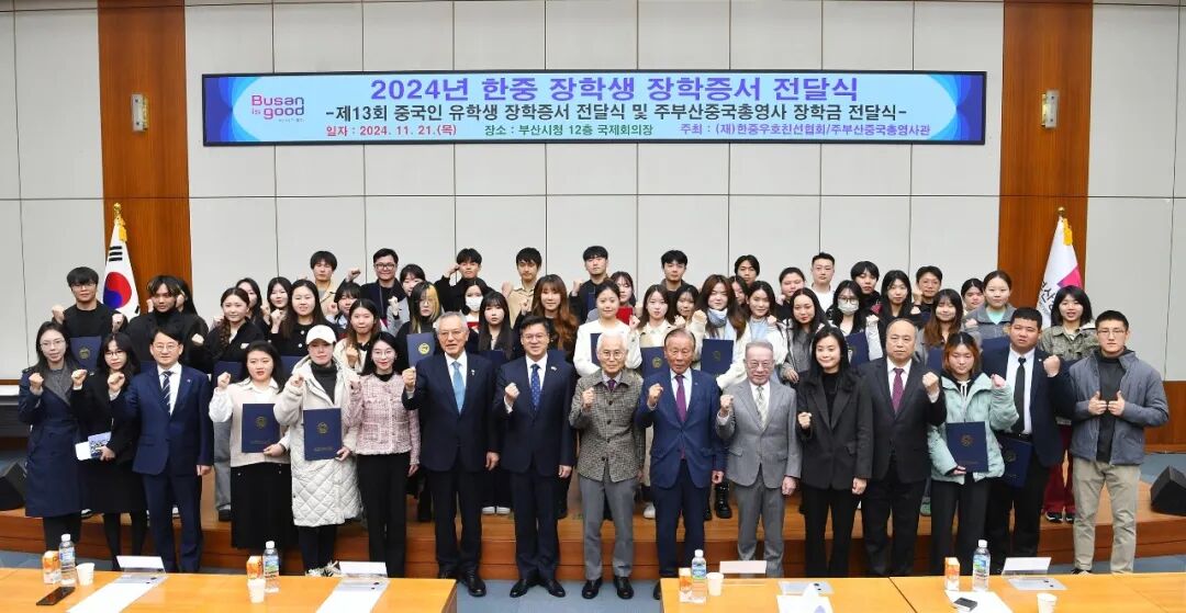 陈日彪向两国获奖学生表示祝贺,对釜山市政府及协会长期以来积极推动中韩民间友好交流合作、支持协助中国留学生在韩学习表示感谢,表示总领馆和协会首次共同举办奖学金颁发仪式,是落实两国领导人密切人文交流,增进两国民间友好,加强青年人往来重要共识的具体举措。陈勉励两国青年学生努力学习,积极开展青年交流,讲好中韩友好故事,传递中韩友好情谊,为两国关系不断发展而努力。