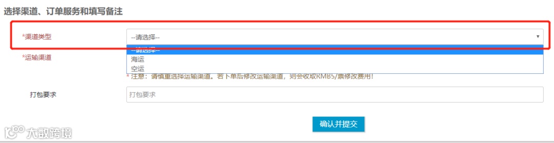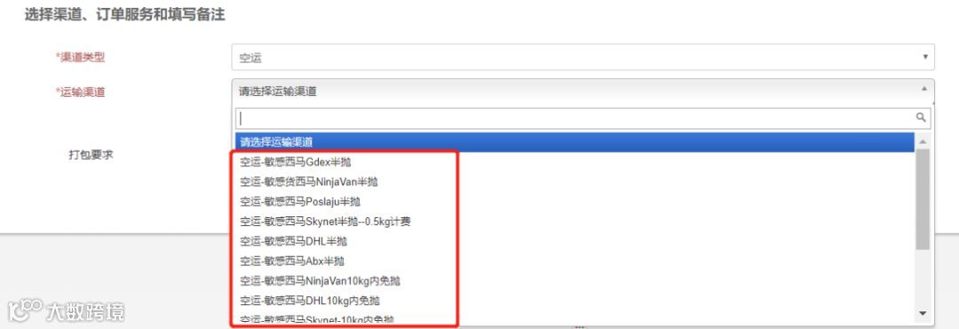 譬如:你们的【渠道类型】选择了空运,并且【货物性质】为敏感货,那【运输渠道】最终全部显示出来的就是空运的敏感渠道▼