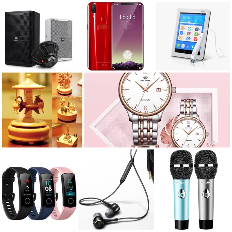 常见商品:手表、手机、MP3、硬盘、U盾、音箱、音乐盒、K歌神器(麦克风)、耳机、收音机、运动手环、学习机、相机、机顶盒、保温杯、光碟、平板保护套、车载引磁片等