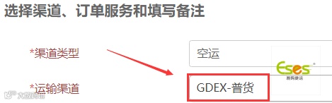 后续在系统下单空运渠道,您只需要选择您指定的派送公司和货物性质,如您选择“GDEX-普货”如图即可