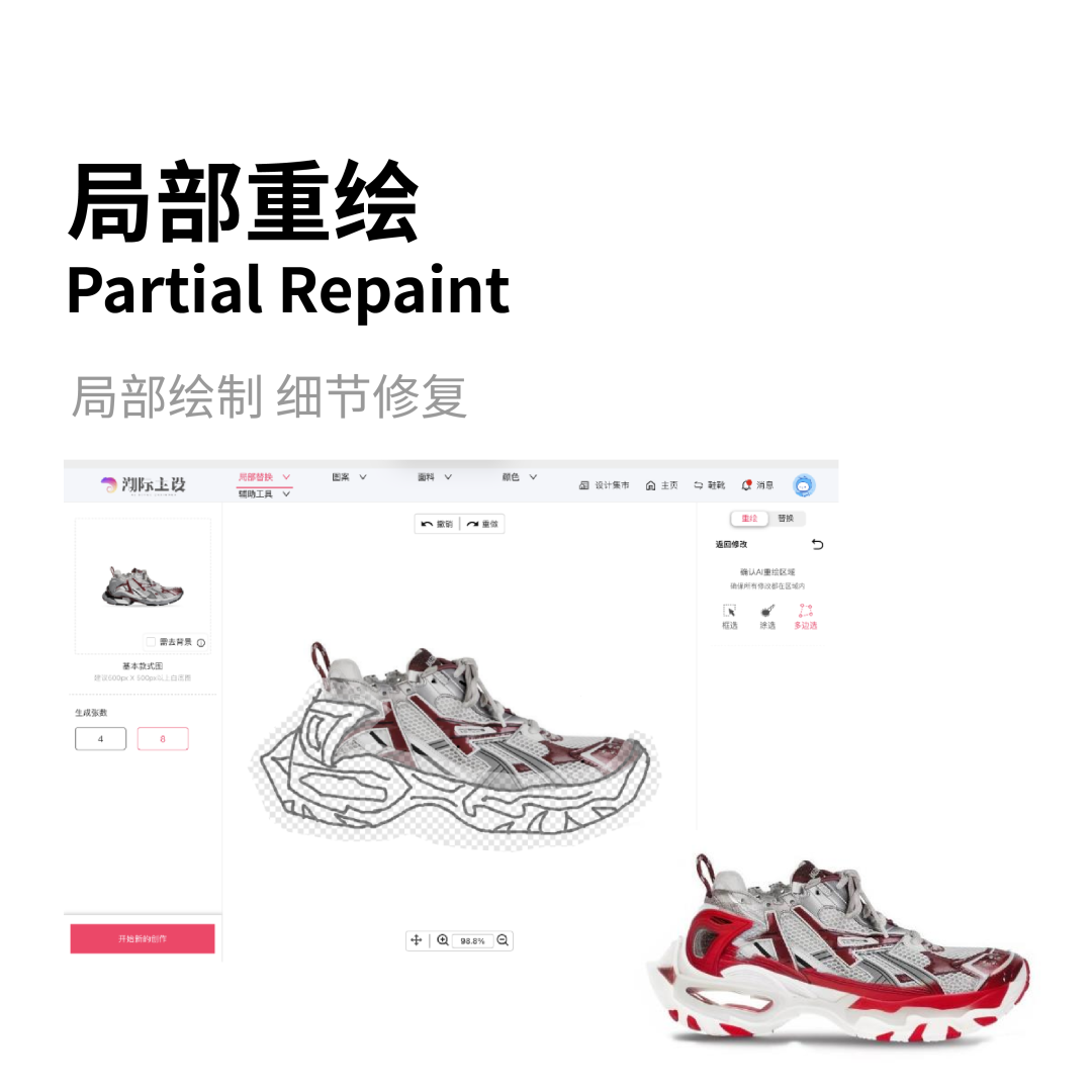 潮际主设通过两年时间的训练学习,已能够根据行业认知,赋予鞋服新的创意,多维度识别季节、风格、工艺、材质等信息,鞋靴类目也包含在内。