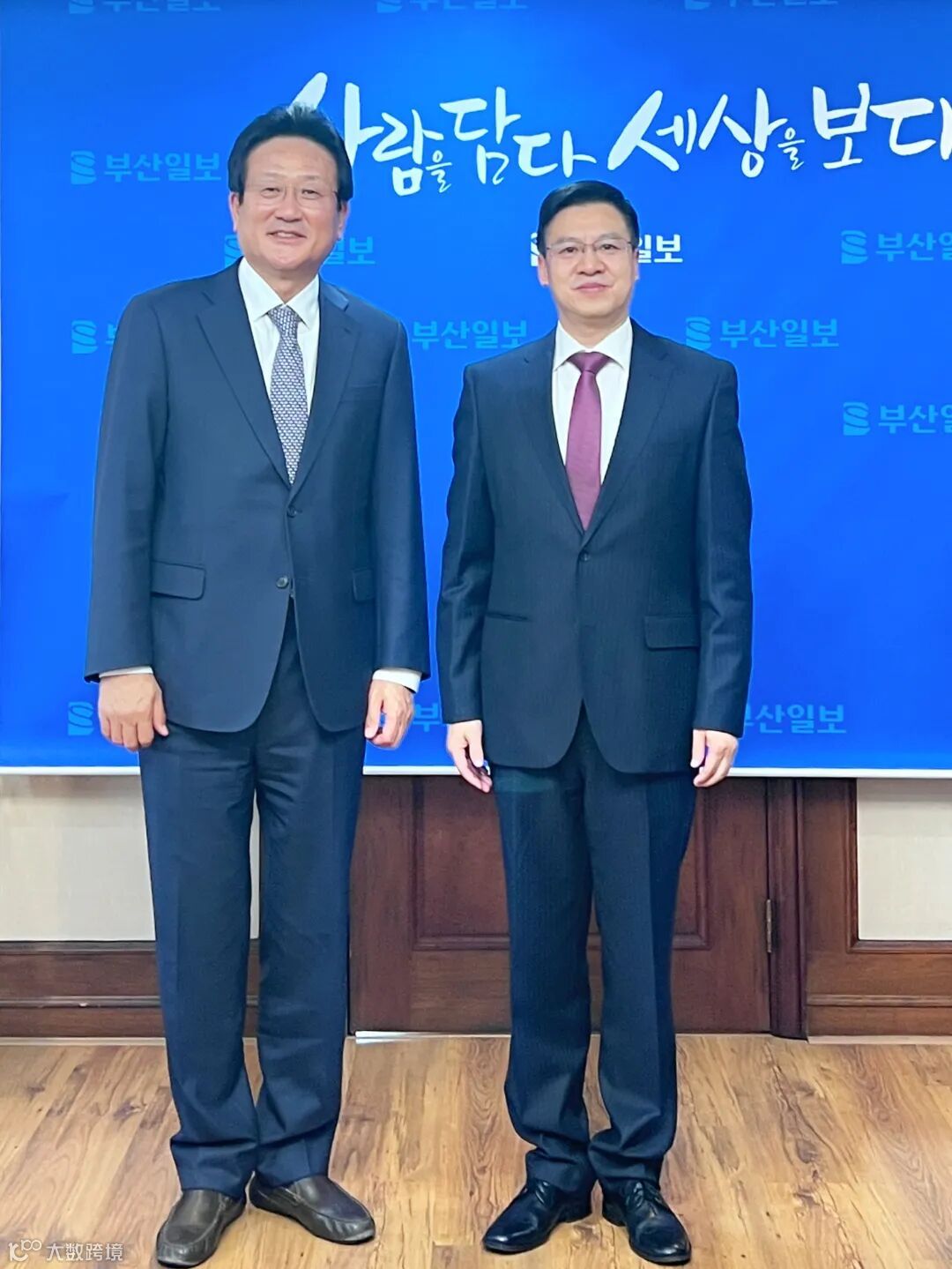 11月7日至9日,陈日彪总领事先后拜会《釜山日报》社长金琎洙、KBS釜山总局长严景铁、《国际新闻》社长裴在汉,王从容参赞等陪同。