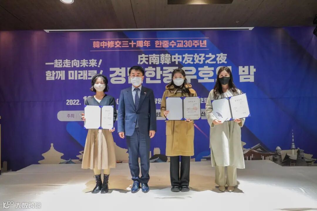陈总领事代表邢海明大使向郑永植会长颁发“中韩建交30周年感谢牌”,勉励庆南韩中友好协会及各媒体、文艺团体以中韩建交30周年为新起点,继续推动青年交流、经贸投资、观光会展合作,为中韩民间友好多做贡献,总领馆愿与领区各界一道推动地方务实合作和中韩关系迈上新台阶。