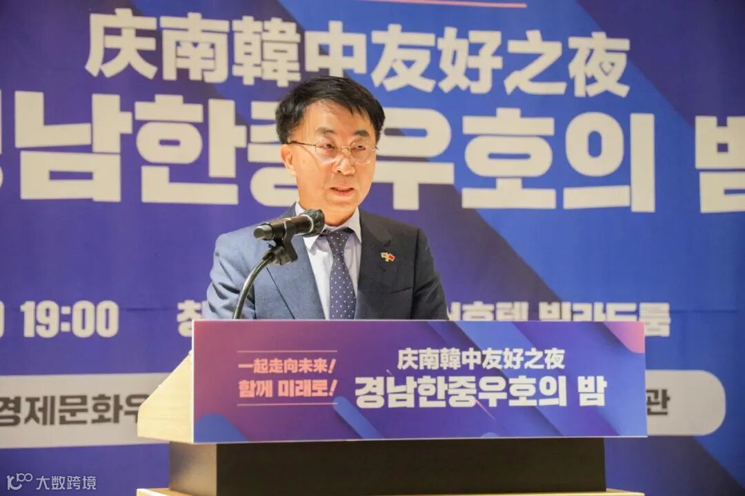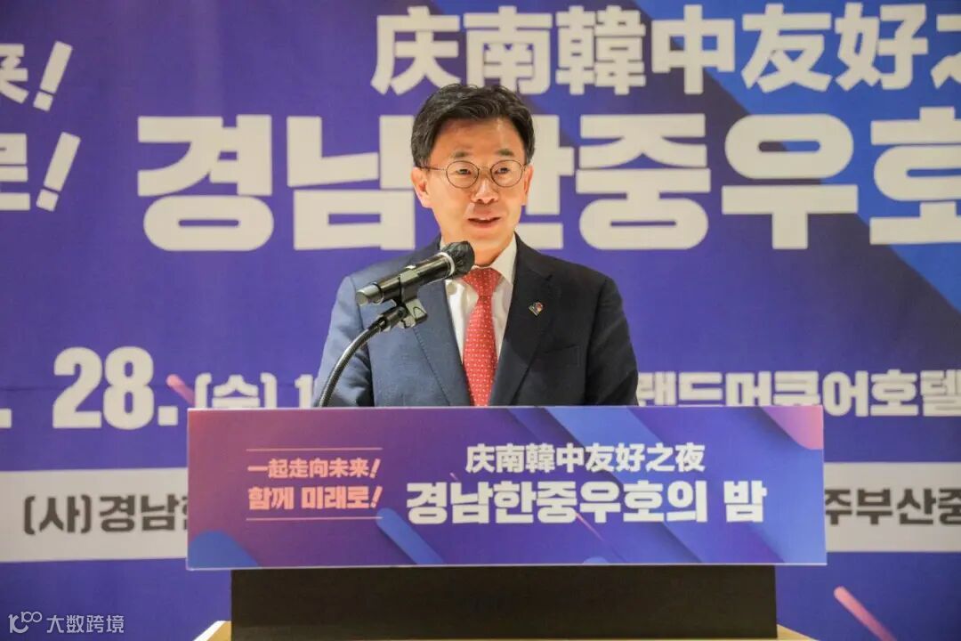 陈总领事致辞表示,中韩地缘相近,文缘相通,人缘相亲,建交30年来两国关系实现全方位、跨越式发展。地方合作是双边关系的重要组成部分,包括庆南在内的领区积极开展对华友好合作,经济人文交流成果丰硕。古有朝鲜名将李舜臣与明朝水师陈璘将军在庆南南海郡露梁联合作战、击退入侵倭寇;今日庆南已与山东省、西藏自治区等多个省区建立了姊妹和友好关系,象征中韩友谊的北京丁香种子扎根庆南,盛开友谊之花,来自陕西汉中市的4只朱鹮作为友好“使者”来到庆南,现已繁衍了400多只。