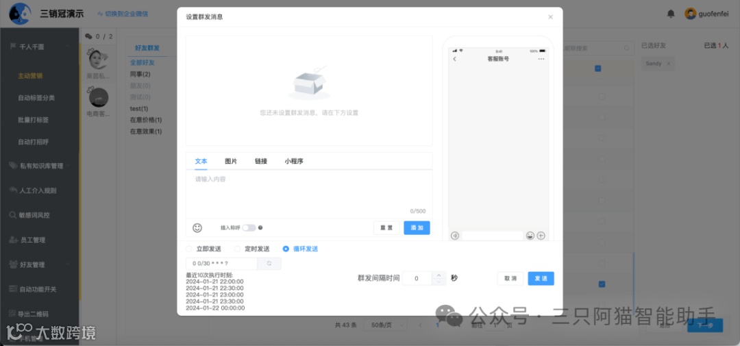 新增循环发送功能,用户可制定周期性的消息任务;已创建好的任务也可以编辑周期规则