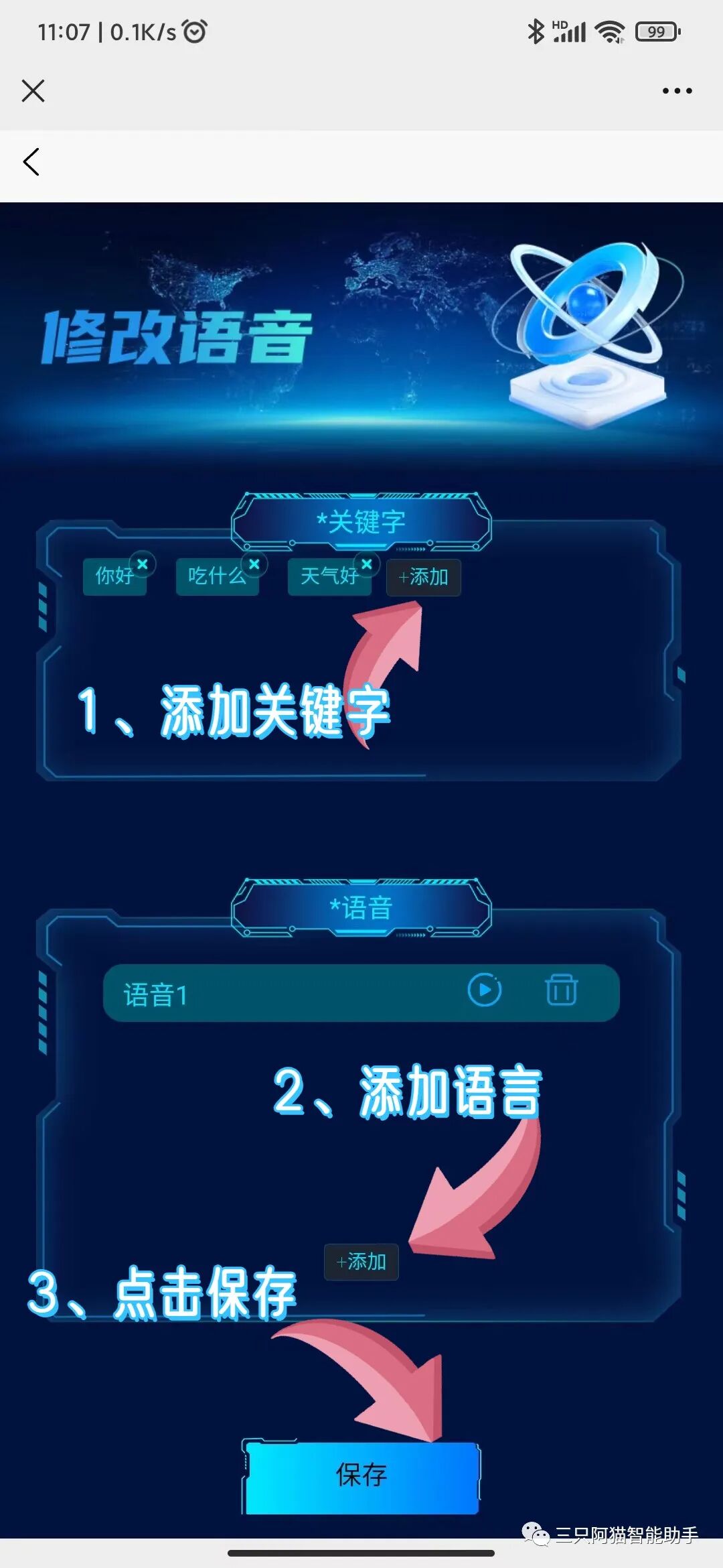2、AI应答语音添加不再强制输入名称,默认名称为第一个关键字。