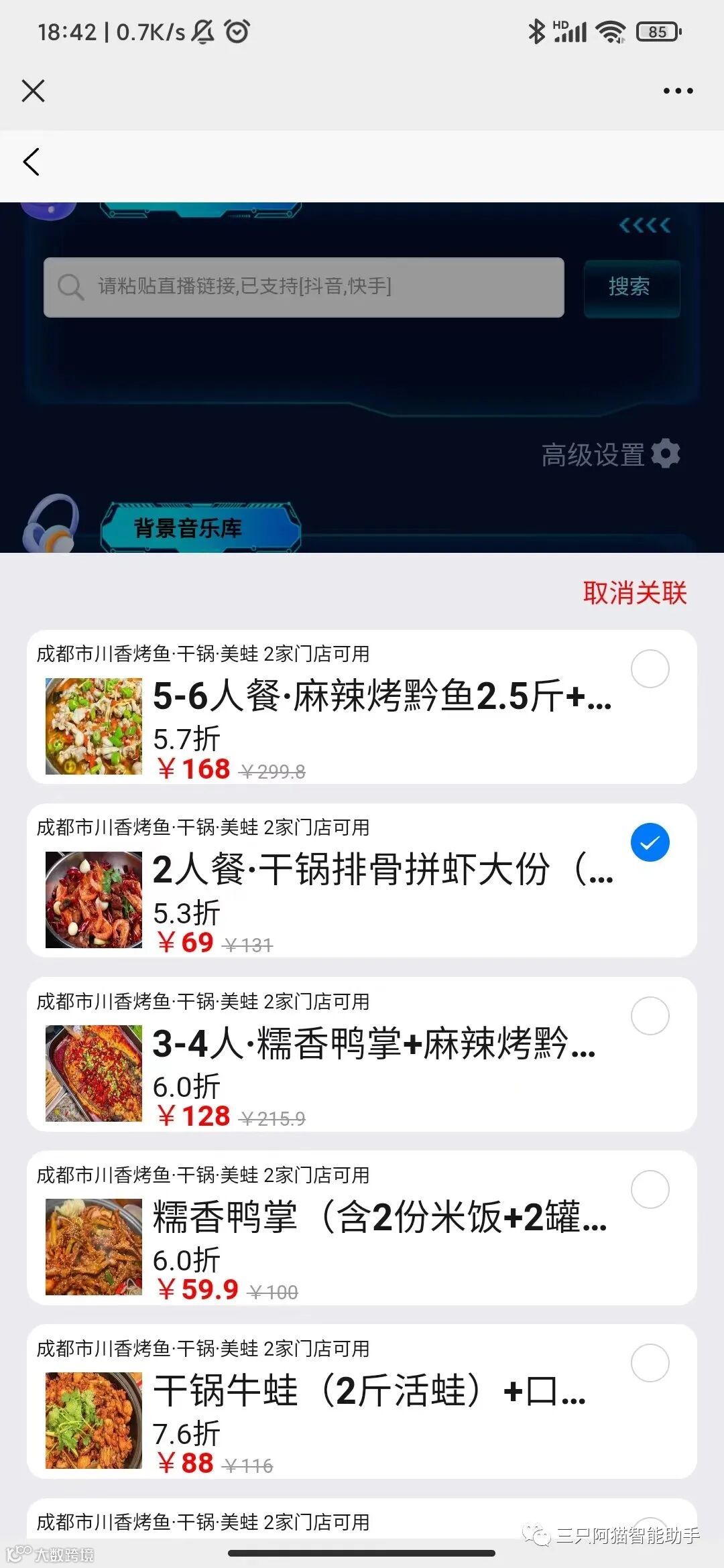 在直播间播放该语音时即可实现团购商品卡智能弹出。