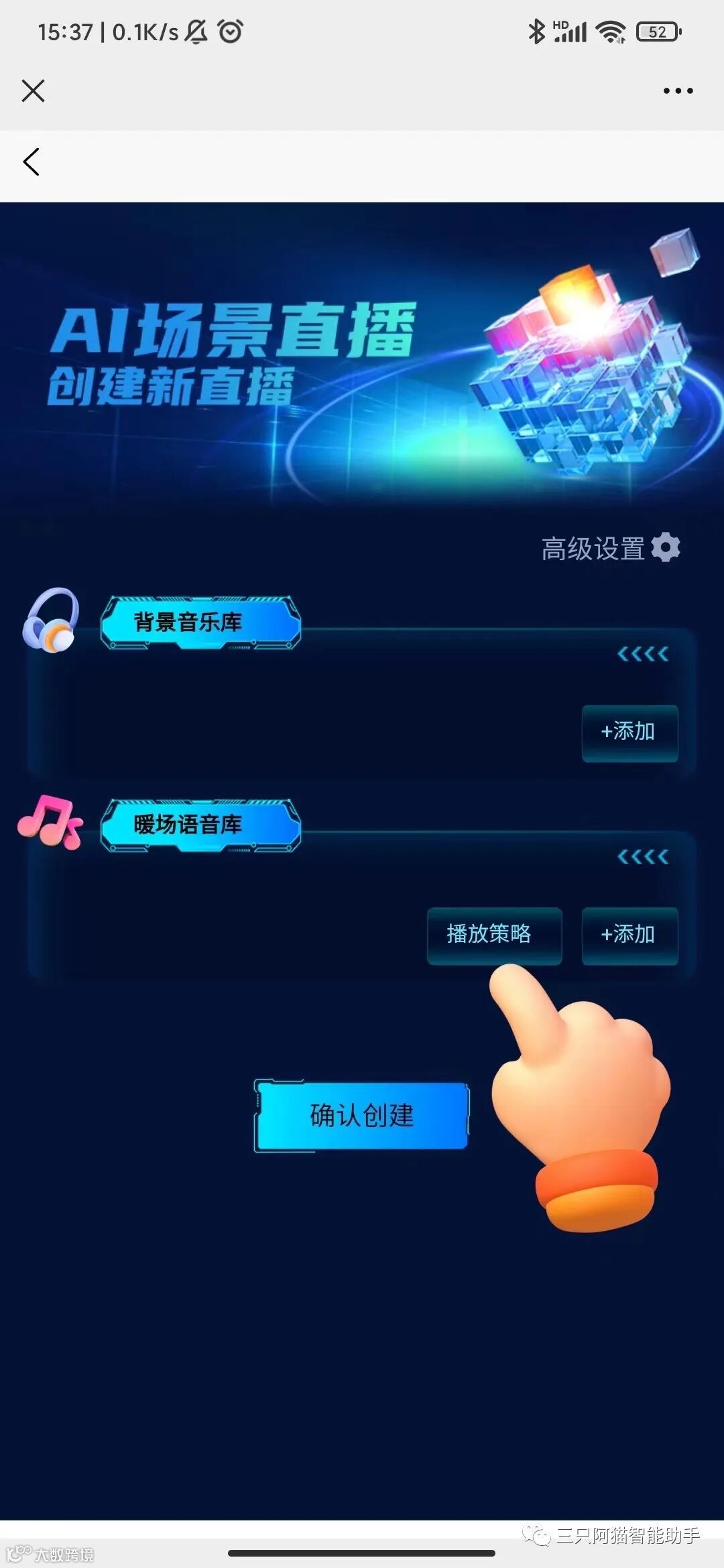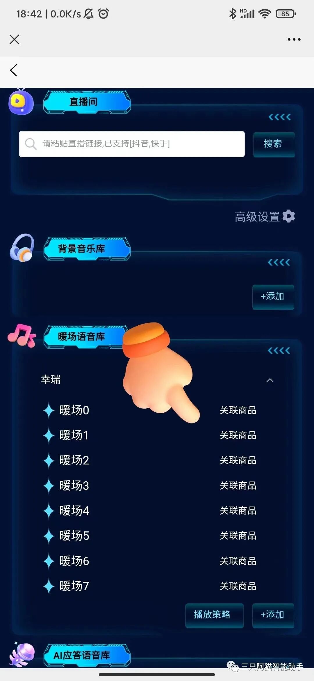 添加暖场语音库时还可以自定义播放策略,包含顺序播放和随机播放两种选择。