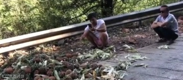 网络主播在菠萝堆附近直播 图源:@紧急呼叫