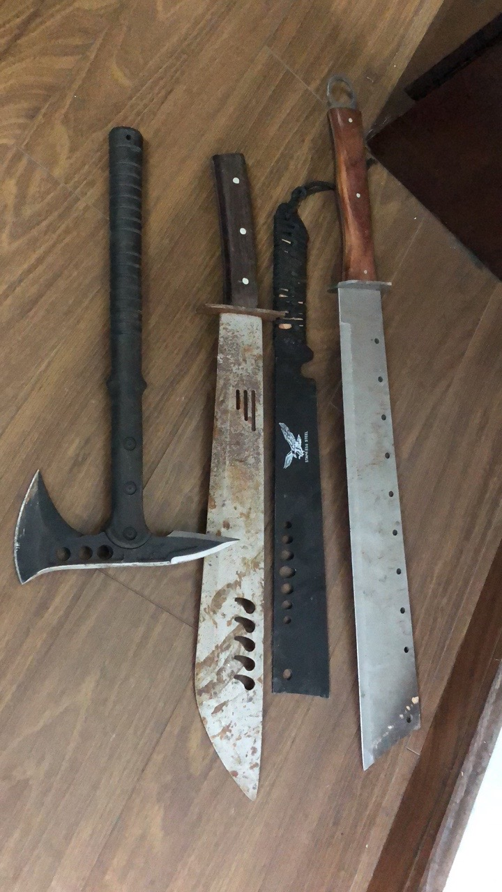 不给证件就到处摔屋内的东西,拿着刀威胁着不让出门,也不让吃饭......