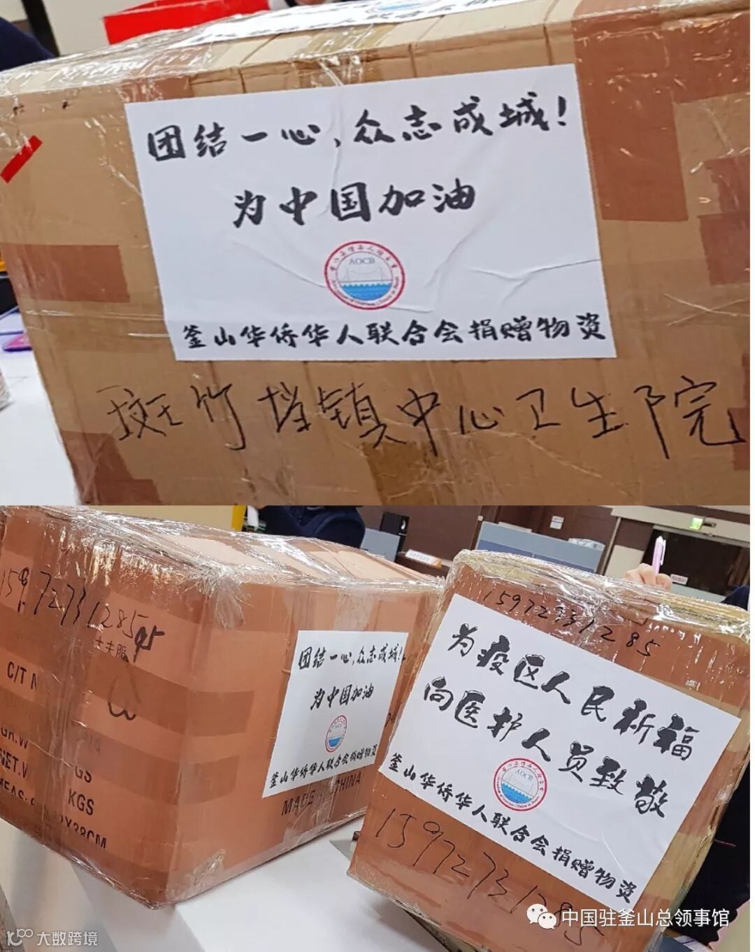 这些慈善款物来自大邱庆北华侨华人联合会、大邱中华民族侨民会、庆南中国侨民协会、中国旗袍总会韩国大邱爱华总会、釜山华侨华人联合会及釜山、蔚山、大邱侨胞等(排名不分先后)。此外,还有更多侨胞正在加入这场战斗的“手推车后勤队”。