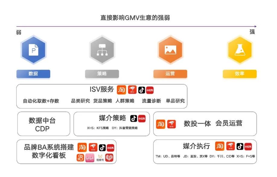 策略一致性是业务贯穿的关键点,以增长为导向,挖掘增长潜力最大的品类、人群、货品,以投放未落地点,实现以业务增长为导向的数投一体,将策略与推广效率实现最大化。