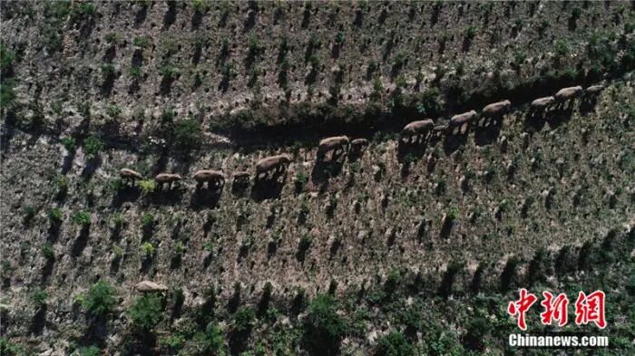 5月30日,云南北迁象群进入玉溪市红塔区大湾村境内 视频来源:中新视频