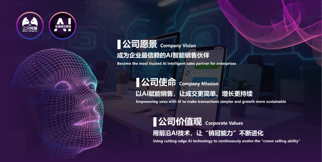 三只阿猫智能科技有限公司是一家集AI智能体产品研发、测试、应用、销售、维护、升级等一体的人工智能技术公司,致力于为企业打造永不疲惫的“AI销冠”,实现企业数字化转型和业务增长。