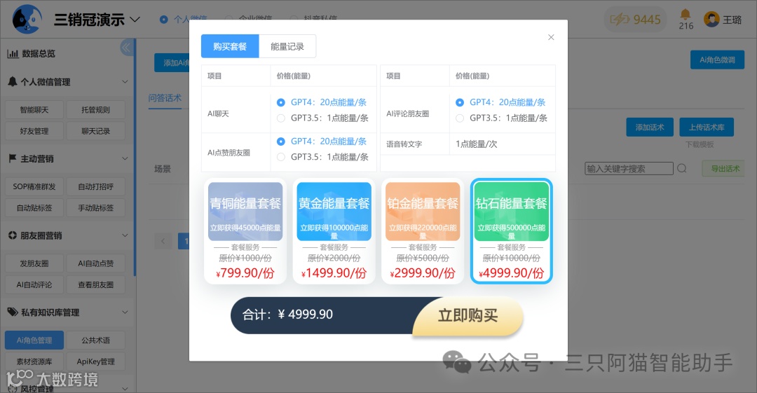 三销冠系统的gpt调用费用会持续降低,对AI销售客服系统赋能各行各业的企业来说,门槛越来越低了,利于企业成本管控,提高企业生产效率等。