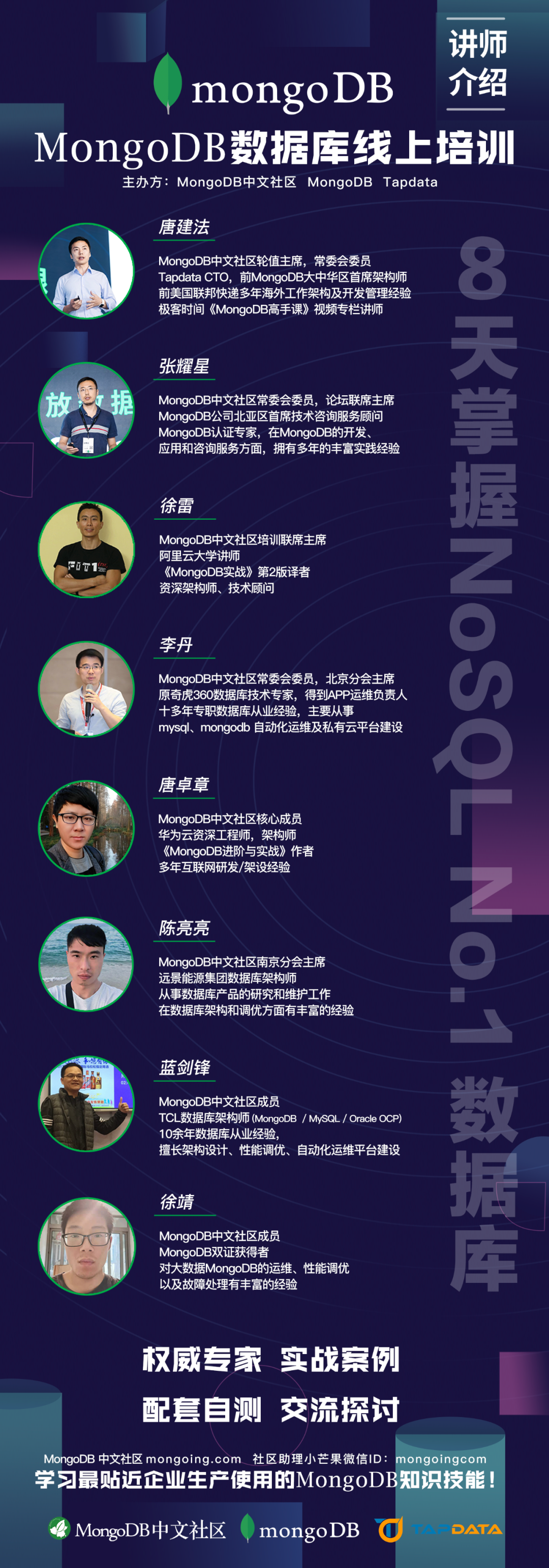 * 分享培训海报领MongoDB周边,请在Mongoing中文社区微信公众号后台回复“培训”,活动介绍详见文末。