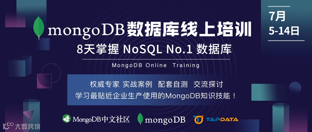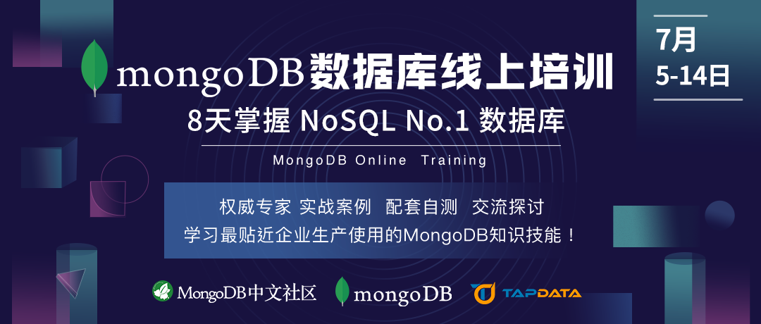 为了让更多朋友更顺利地掌握MongoDB并获得最贴近企业生产使用的MongoDB知识技能,MongoDB中文社区联合MongoDB和Tapdata一起开展MongoDB培训。