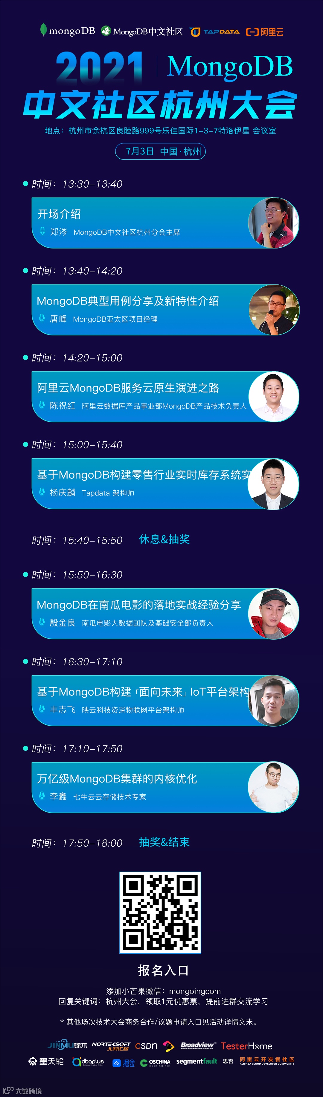 2021年MongoDB中文社区杭州大会就在7月3号(本周六),诸多MongoDB技术分享和一手实践干货在现场等你来!