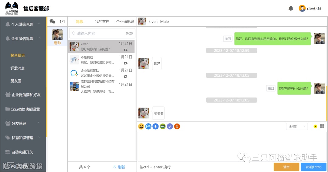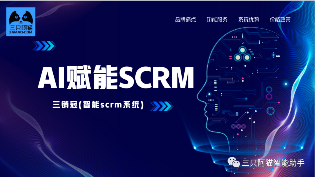 三只阿猫着眼智能AI浪潮,依托自研AI大脑创新打造了社交与传统客户关系管理的智能scrm系统.它能够为需求对象提供“主动”和“被动”的功能服务
