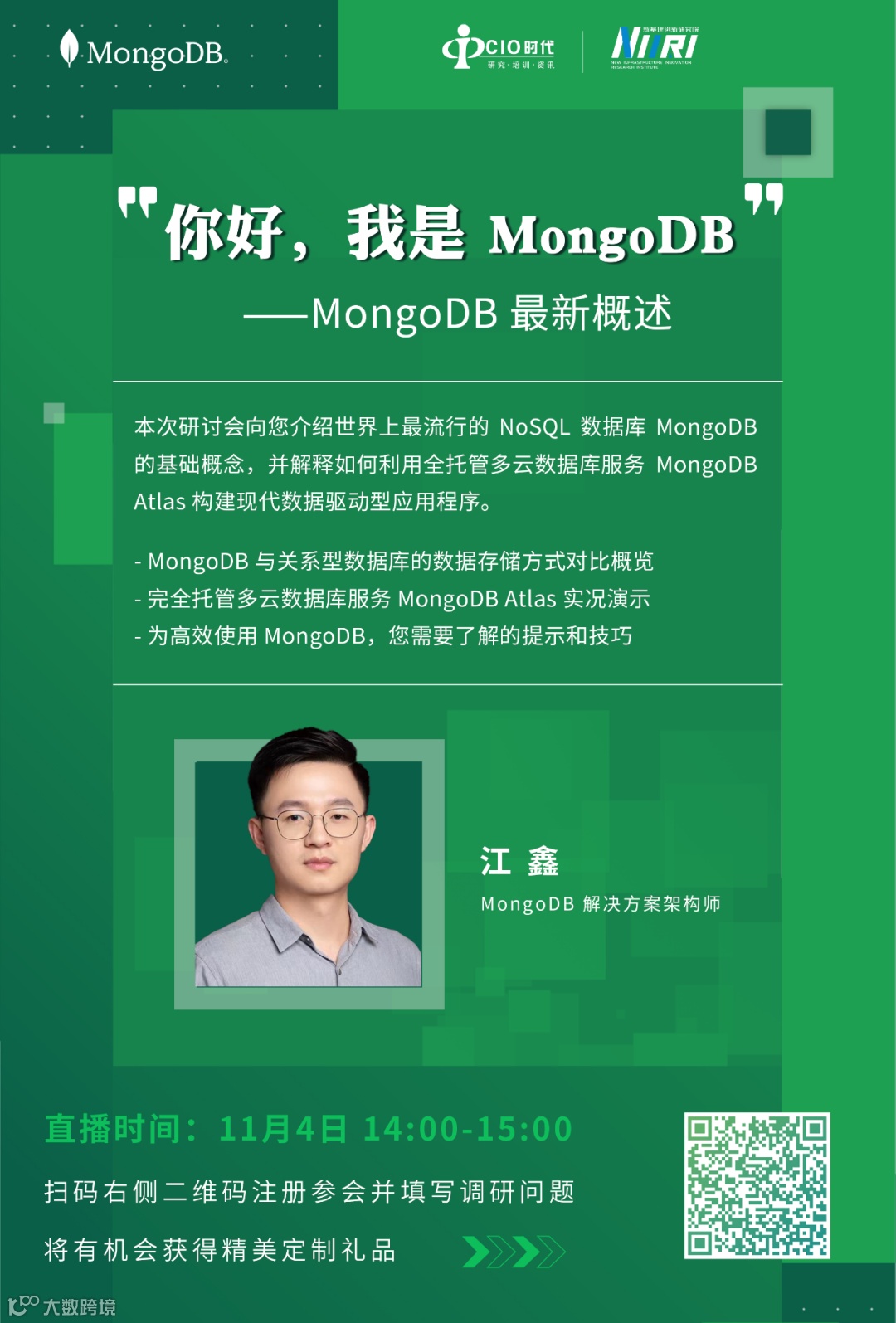 本次研讨会向您介绍世界上最流行的 NoSOL 数据库 MongoDB的基础概念,并解释如何利用全托管多云数据库服务 MongoDB Atlas 构建现代数据驱动型应用程序。
