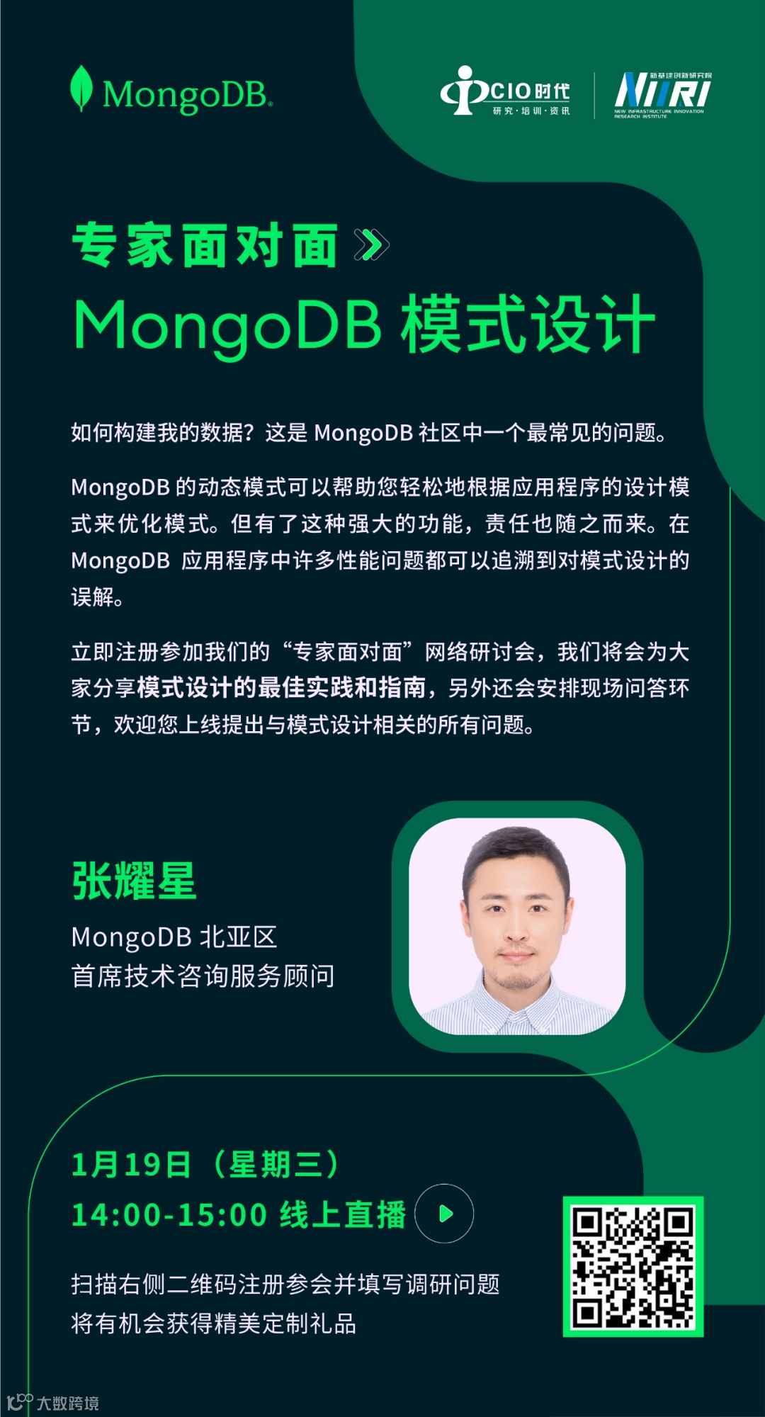 立即注册“专家面对面” - MongoDB模式设计网络研讨会
