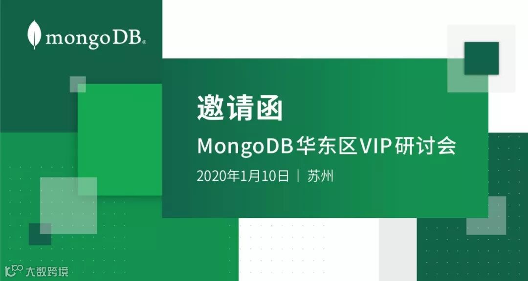 在跨入新年之际,我们将在苏州举办MongoDB华东区VIP研讨会,诚邀您出席。此次研讨会将由MongoDB北亚区技术总监林涛先生与您分享MongoDB最新解决方案,参会嘉宾分享各自企业使用MongoDB的应用场景、使用心得及最佳实践。让我们齐聚一堂,共同探讨如何有效利用数据资产,让新型数字化应用开发更快、更简单;运行更可靠、客户体验更好;部署更容易,运维更简单,从而实现企业敏捷性。