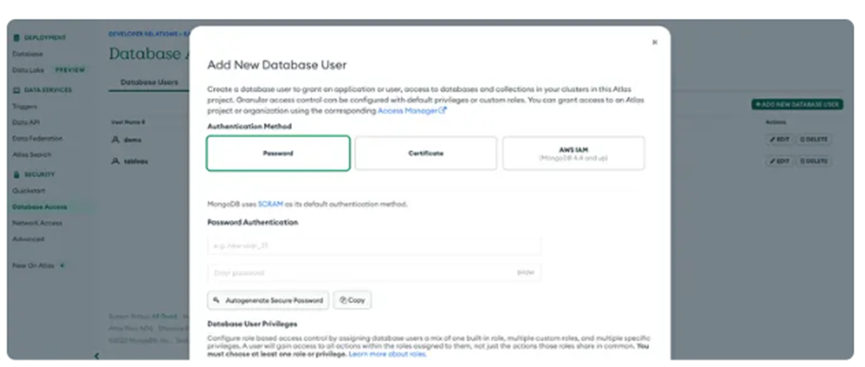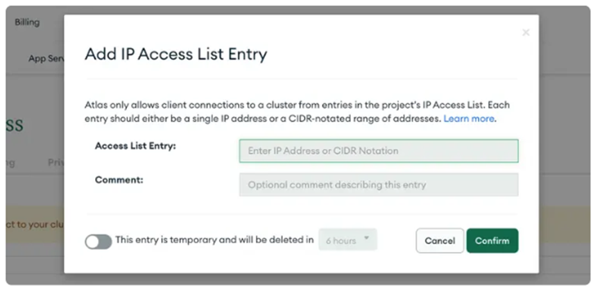 不过,这些操作还不够。要想在 Web 仪表盘之外的位置使用 Atlas 无服务器实例,就需要先创建一些数据库访问规则和网络访问规则。