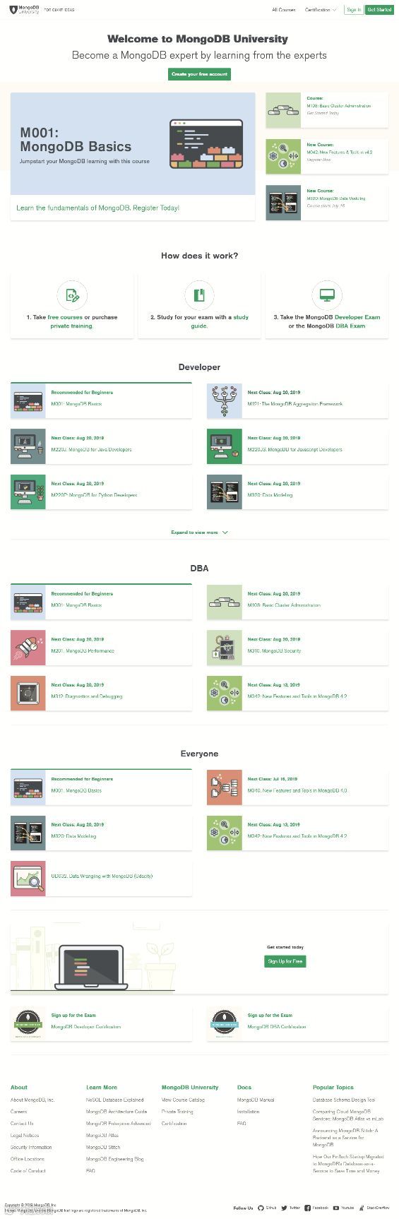 可以说“MongoDB大学”在官网上无处不在,它在这里: