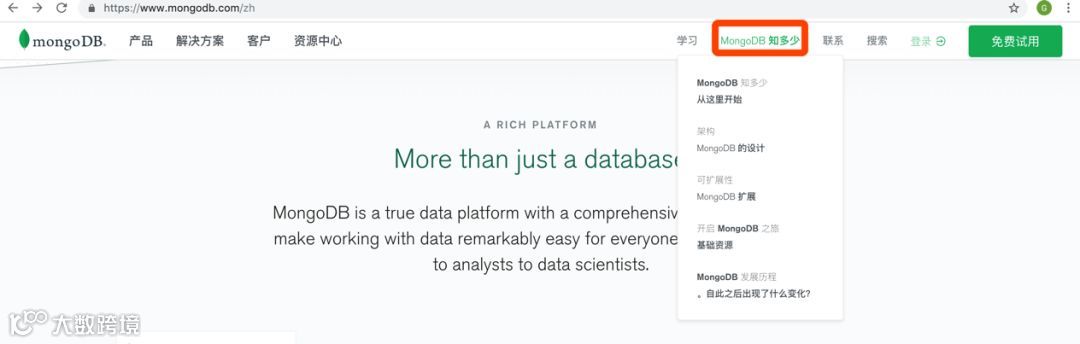 大咖进阶第一步:如果你不够了解MongoDB,请从顶端导航栏“MongoDB知多少”,开始进阶之旅。