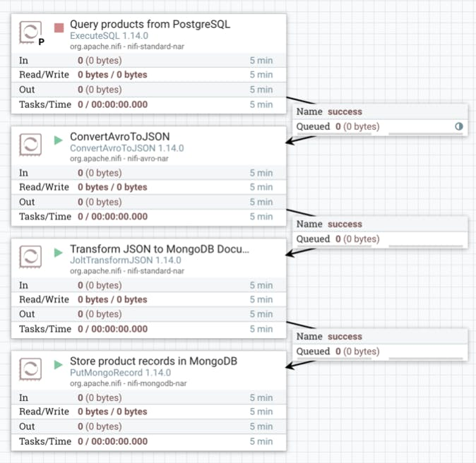1. 首先,使用 ExecuteSQL 处理器将合适的数据从 PostgreSQL 转移至 BigQuery。数据管道可以编排为定期执行。