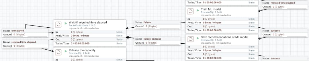 3. 下一个处理器 (ExecuteSQL) 将执行 SQL 查询,使用从第一个工作流中复制的数据创建和训练 Matrix Factorization 机器学习模型。