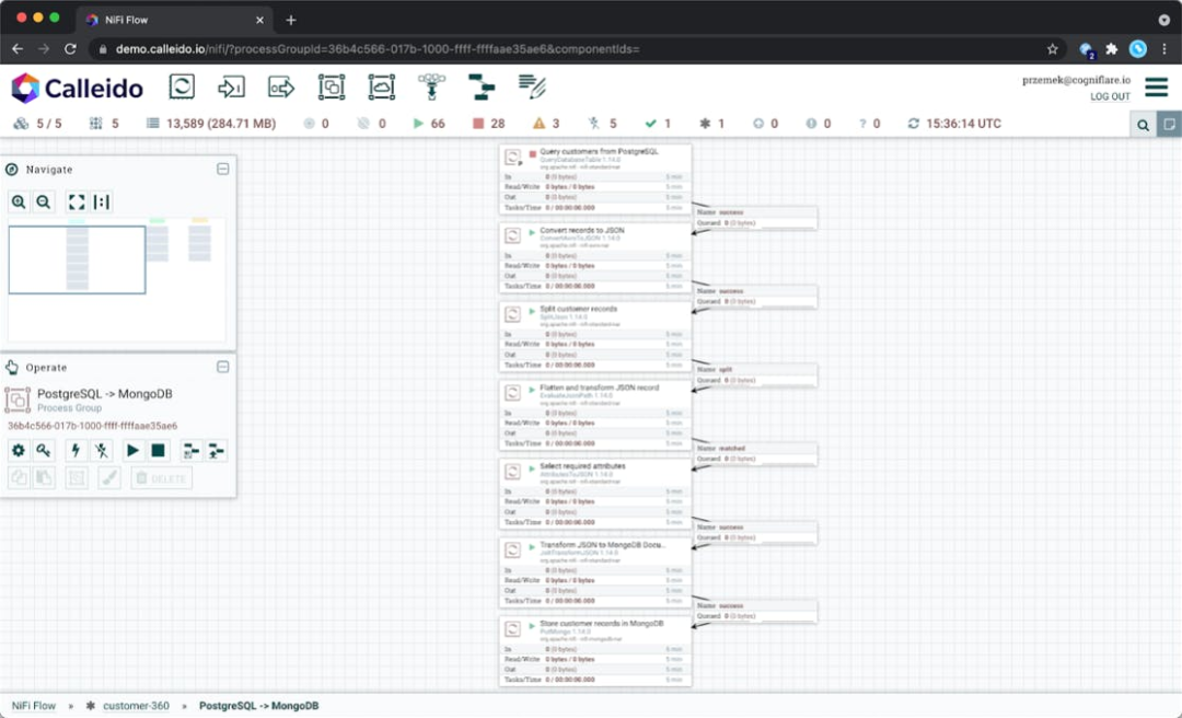 图 2:使用 Calleido 数据管道,将客户数据从 PostgreSQL 复制到 MongoDB