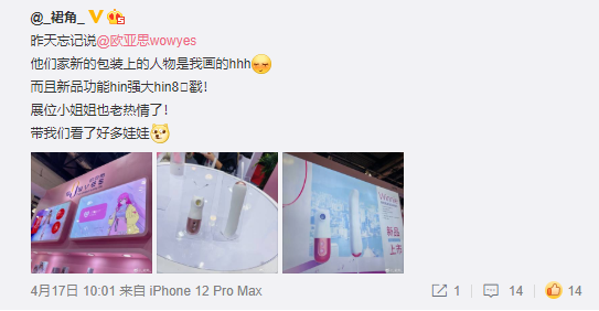 欧亚思品牌形象人物设计者裙角也来到我们展位打卡拍照,录制了vlog,对成人展有兴趣的伙伴可以去她的微博云游览上海展哦!