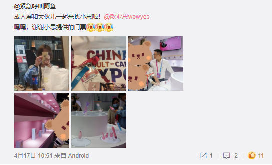 欧亚思官方微博举办的赠票打卡活动,让许多对成人展好奇的小伙伴有机会一览究竟。
