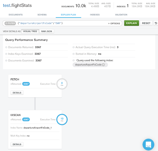 你可以将查询计划以树状的方式进行显示,或者也可以查看完整的原始JSON输出。文档中有更多关于Compass可视化查询计划的细节。