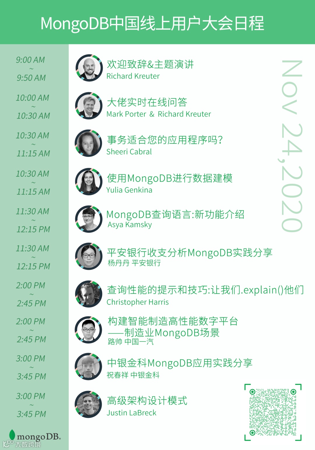 在这充实的一天中,我们除了发布最新、最全的 MongoDB 产品和功能外,还将推出线上“专家问答”环节、动手实操培训和研讨会以及独特的线上社交活动!