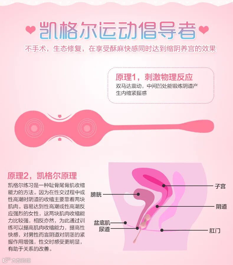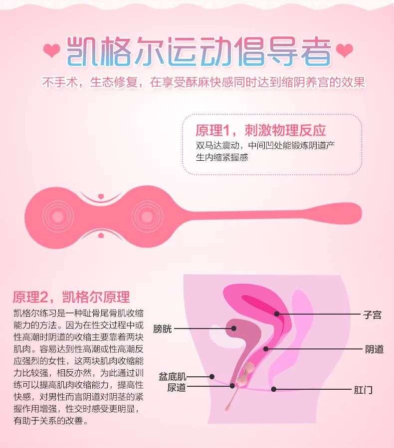 缩-阴-球的医学原理是“凯格尔运动”,其物理原理是利用地心引力,将球体放入体内后,在重力的作用下,阴-道肌肉会不自觉的收紧夹紧球体,从而达到锻炼的效果,富有弹性,从而使阴-道恢復紧-致。