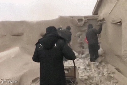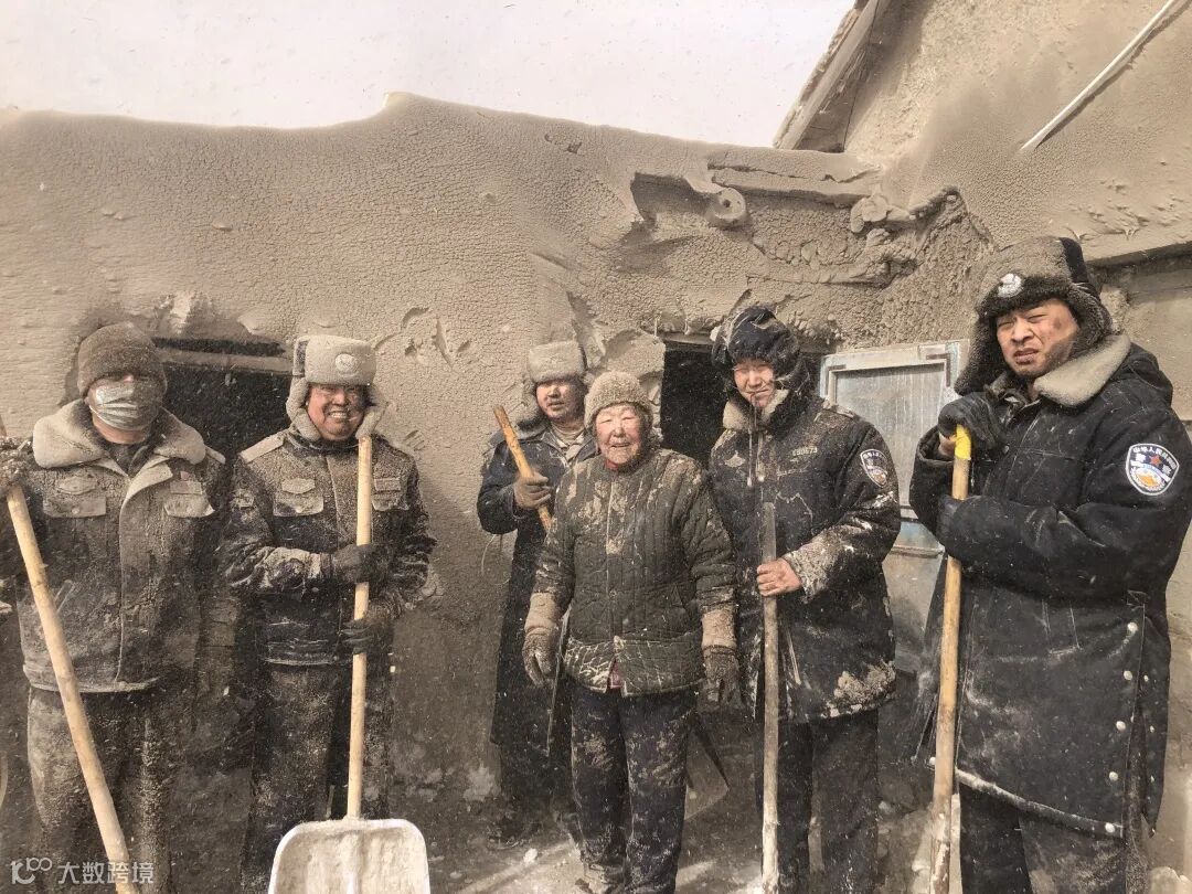 #民警暴风雪和沙尘暴中救人后变成雕塑#