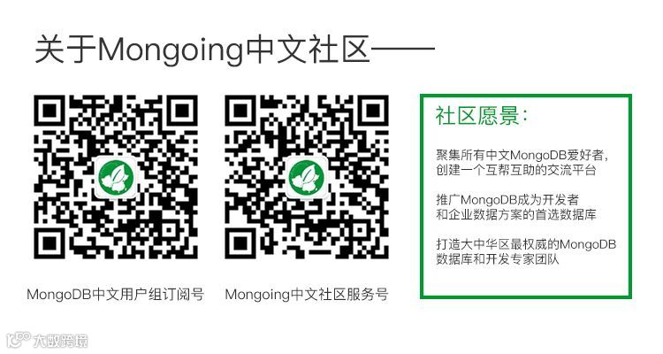 【上午票】可通过转发活动至朋友圈并集30个赞,将截图发至【Mongoing中文社区】服务号后台获取免费培训名额。(微信搜索“mongoing-mongoing")