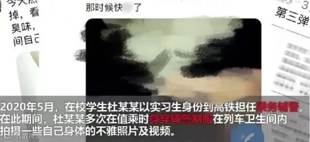 近日,据相关媒体爆料,在校学生杜某某以实习生身份到高铁担任乘务辅警期间,多次在值警时,身穿辅警制服到列车卫生间内拍摄自己的不雅照片和视频,并且上传到境外社交软件上,点击量破万。经北京铁路运输检察院提起公诉,被告人杜某某因传播淫秽物品,被判处5个月拘役。