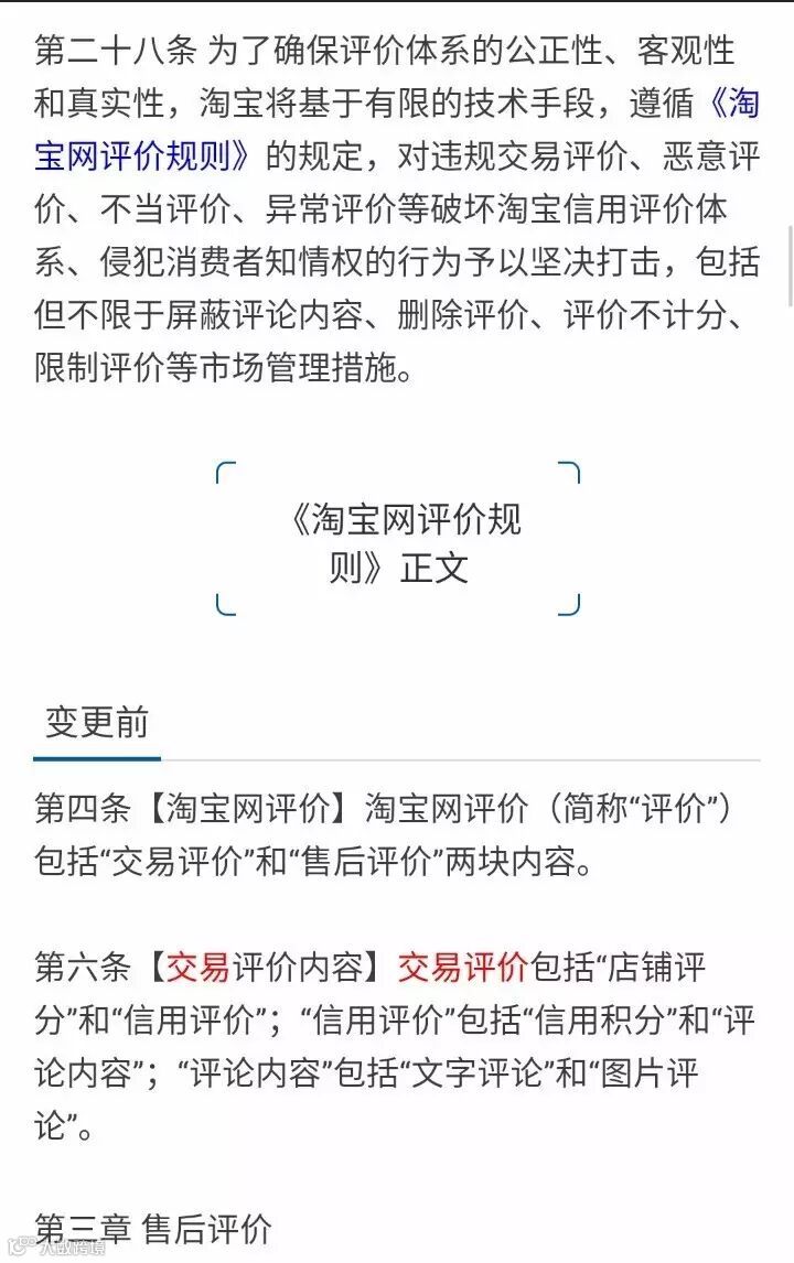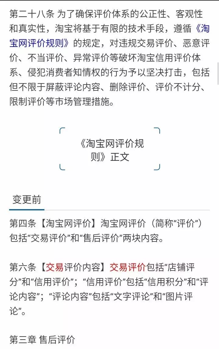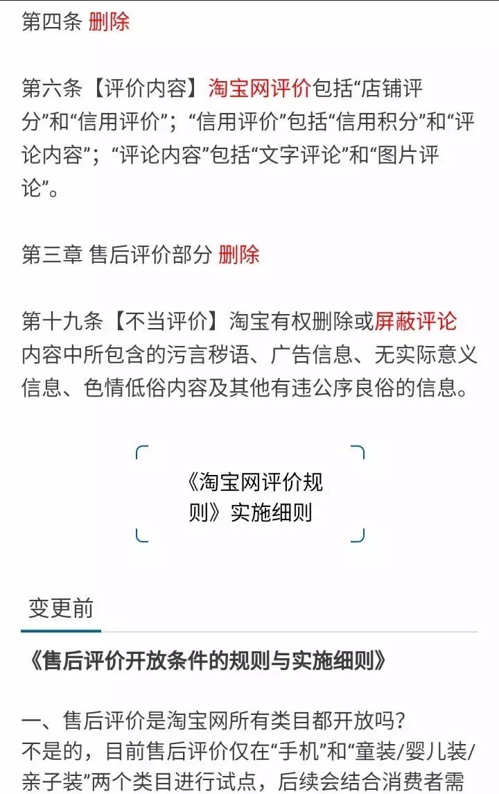 1、调整《淘宝规则》正文中关于“售后评价”规则条款;