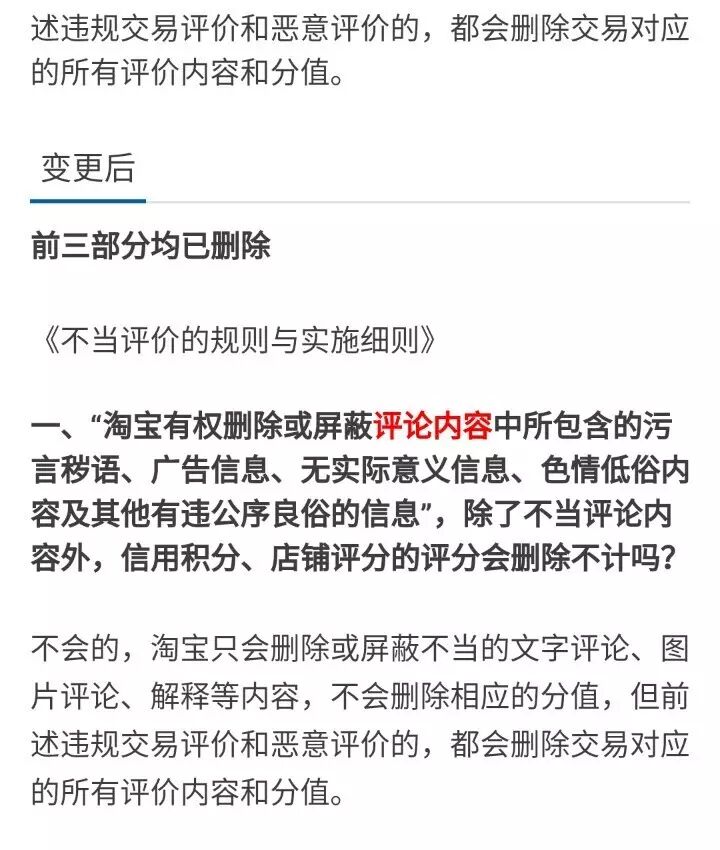 2、删除《淘宝网评价规则》中关于“售后评价”规则条款。