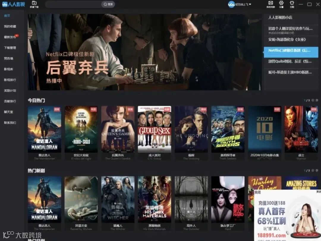 刊载影视作品20000余部(集),注册会员数量800余万,“人人影视字幕组”App及网站曾红极一时。