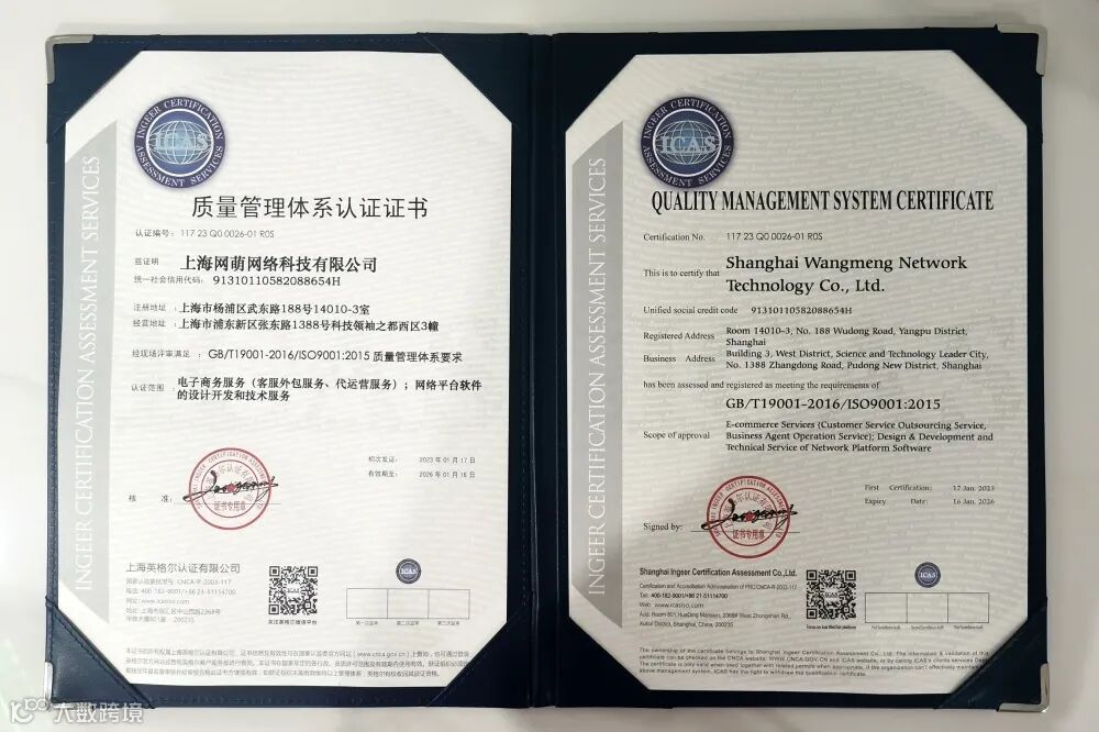 近期,网萌再次获得ICAS英格尔颁发的ISO9001质量管理体系和ISO27001信息安全管理体系证书。