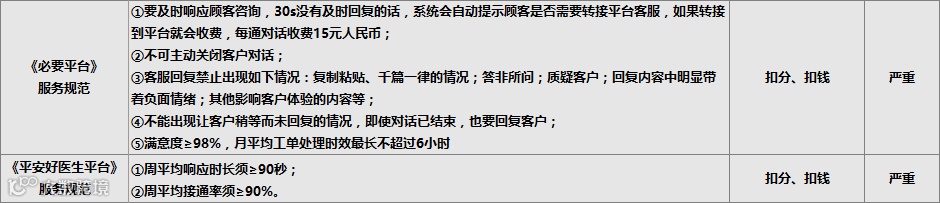 例如,小红书平台有平台质检,月度满意度低于90%,质检合格率低于85%,平台有权关闭商家自主客服,使用平台收费客服,并按次收取服务费。