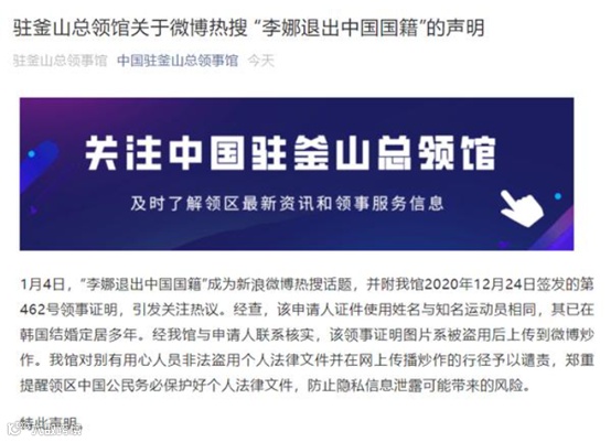 近日,实名认证的微博博主@刘文华律师发布的这样一条微博瞬间登上热搜。不仅内容说得有鼻子有眼,甚至还附上了中国驻釜山总领事馆签发的领事证明:李娜已移民到釜山。