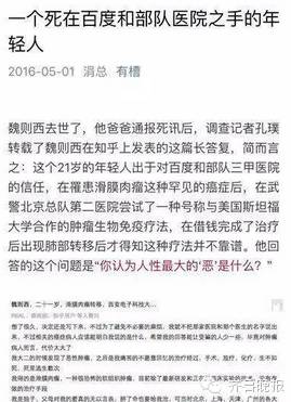 名字叫做《一个死在百度和部队医院之手的年轻人》。