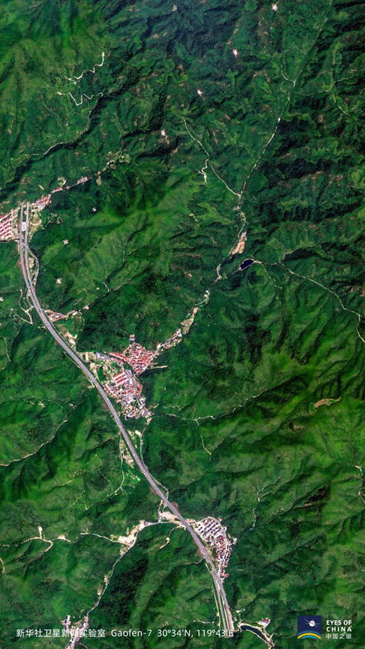 2020年5月,浙江安吉,山水林田湖草生态保护修复中的青山。(“高分七号”卫星)